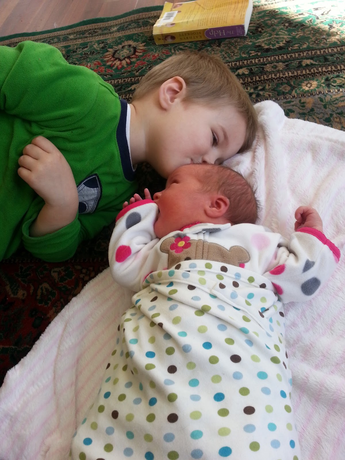The next afternoon we left the hospital because we missed our babies too much to wait longer, I hate sleeping at the hospital and I felt fine. As soon as we walked in the door Liam came running over and the first thing he said was "where is Lydia?!" The kids loved on her for the rest of the day and were so excited to have her home. They have been so sweet with her and Liam always wants her next to him. Whether he is eating or going to bed (we have had to have several talks with him about how she can't sleep in his bed with him). I am so glad they are both so soft and sweet with her!